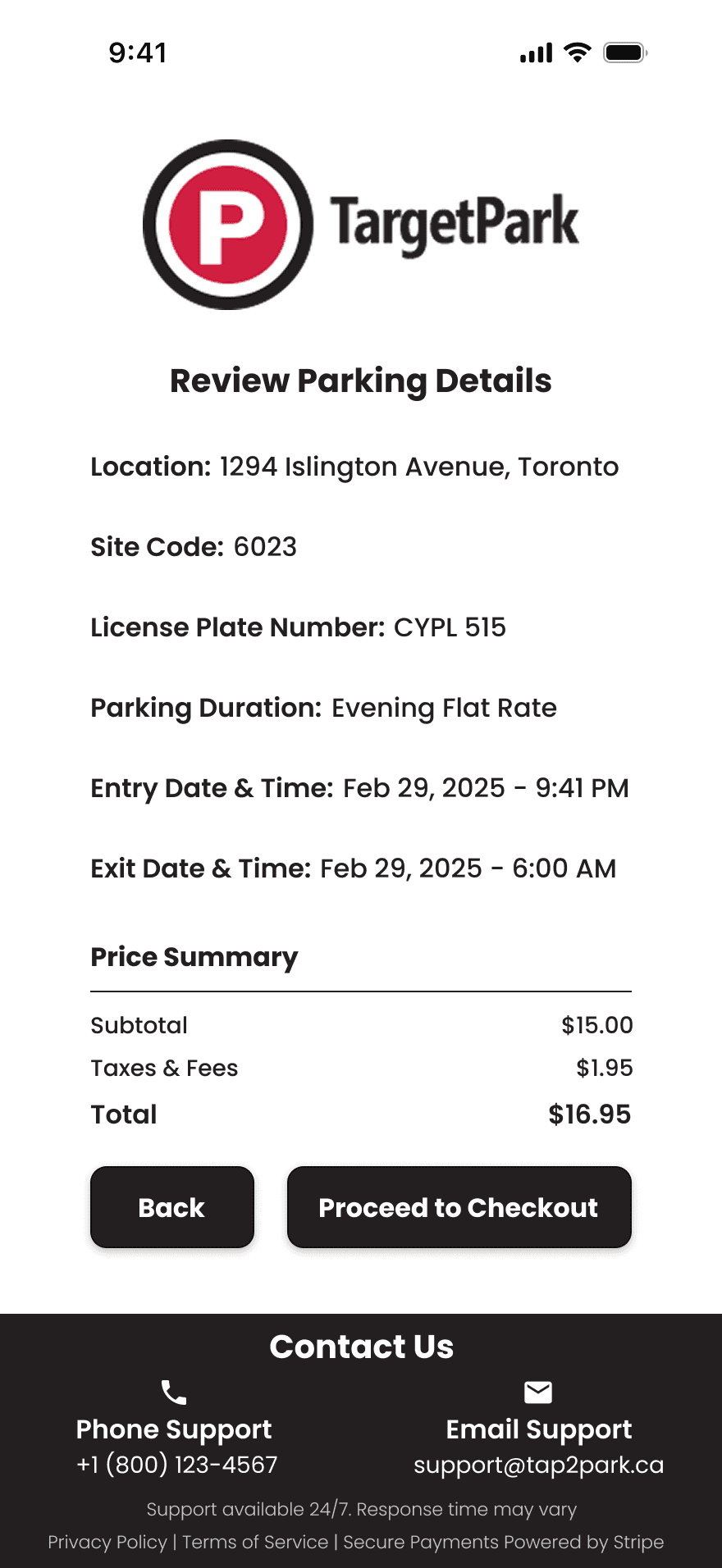 The new review page lets users double check all parking details before submitting, minimizing input errors, preventing accidental fines and boosting confidence at checkout.