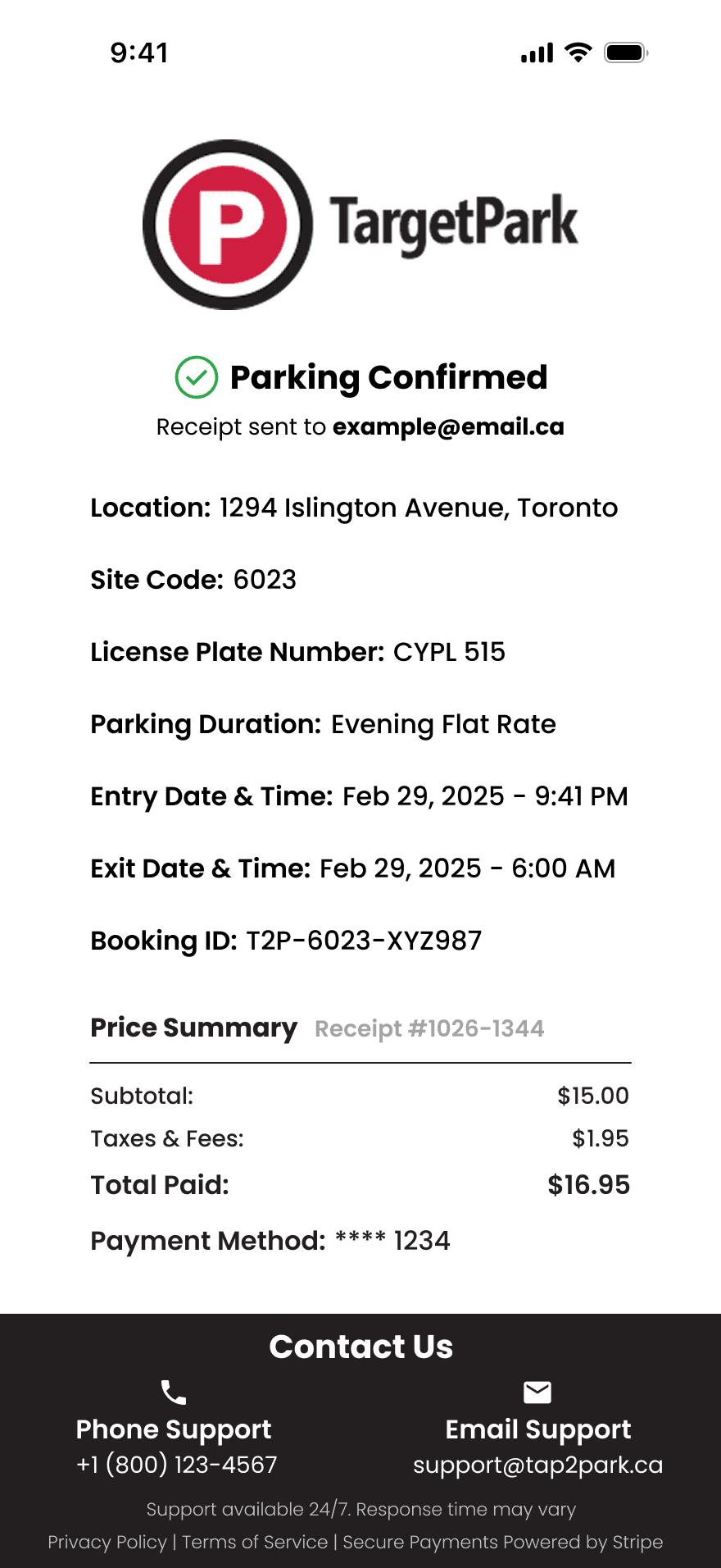 Provides easy access to phone and email support, reducing frustration and helping users feel supported throughout the parking process.